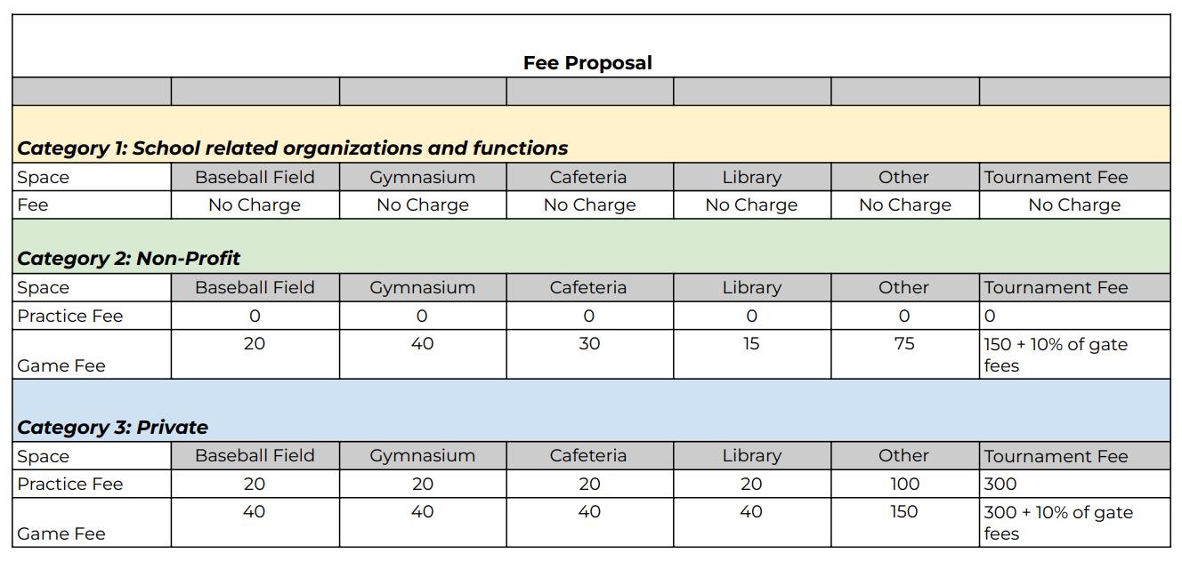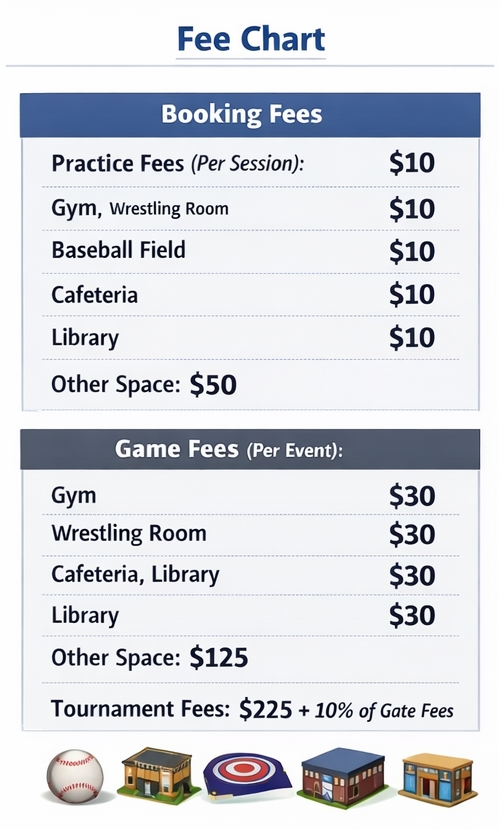 Facilities are available for rent to the public year-round, depending upon availability after use by school functions.